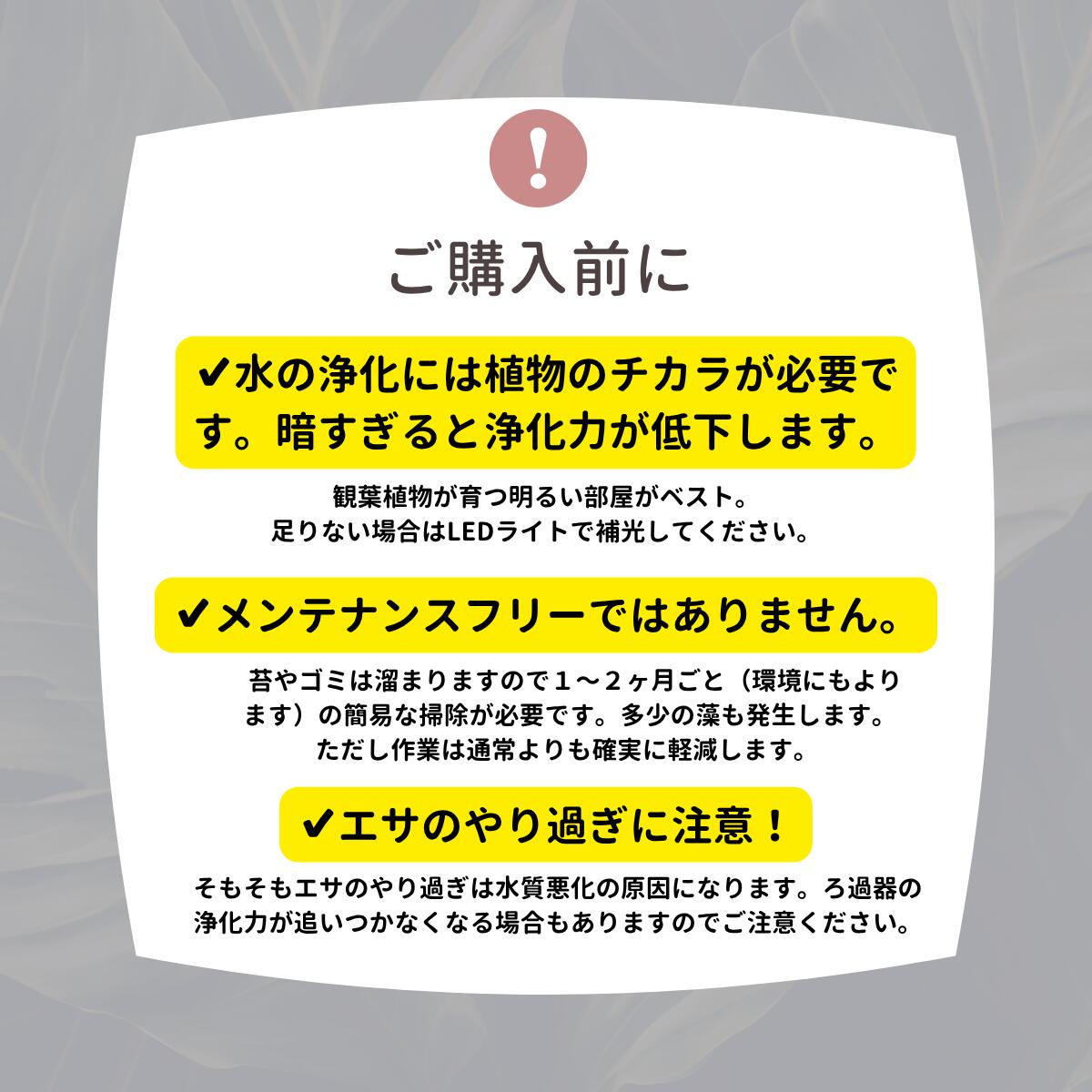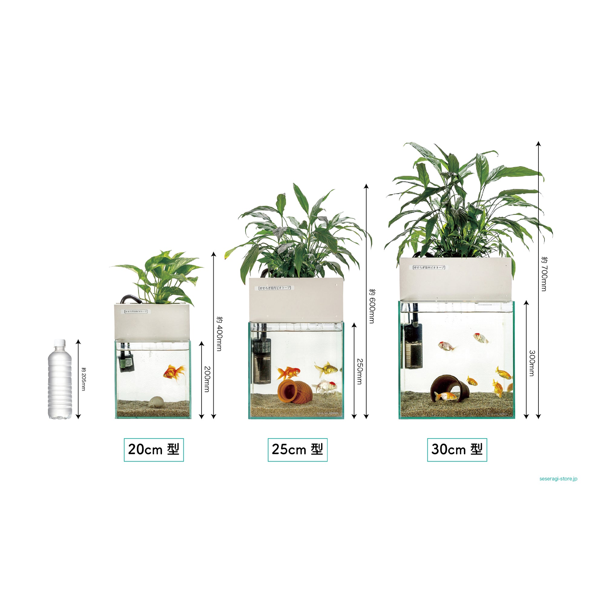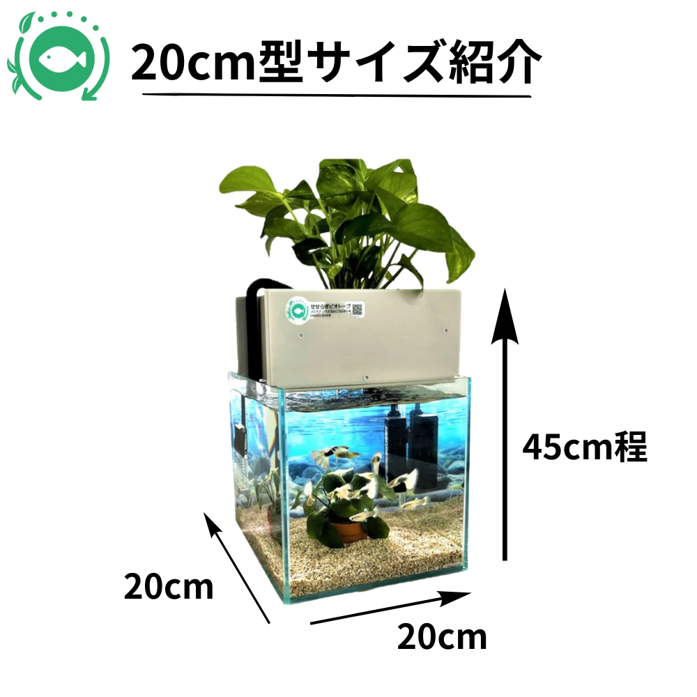 サイズ:縦20cm × 横20cm × 高さ約45㎝程度(水槽+ろ過装置+植物 )